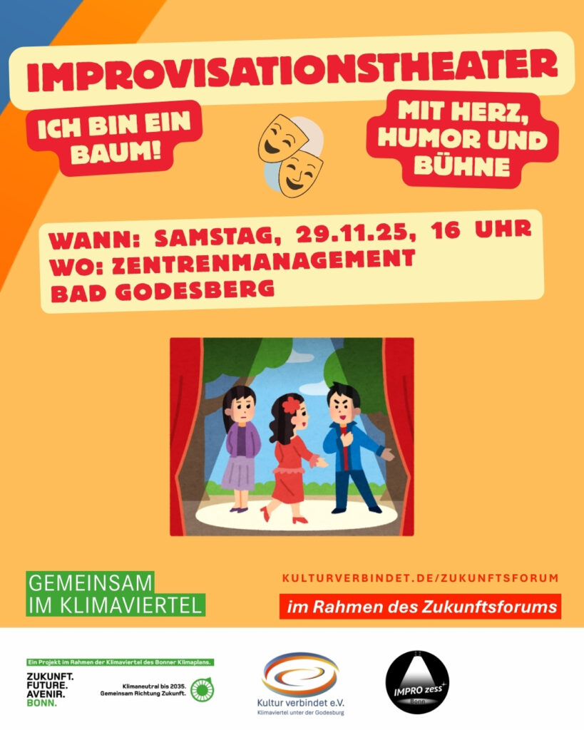 Hier erforschen wir, wie wir spontan, humorvoll und bewusst mit dem Thema Klima und Nachhaltigkeit umgehen können – auf der Bühne wie im Alltag.Datum: 29. November 2025