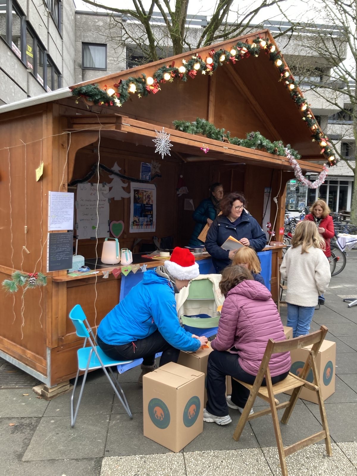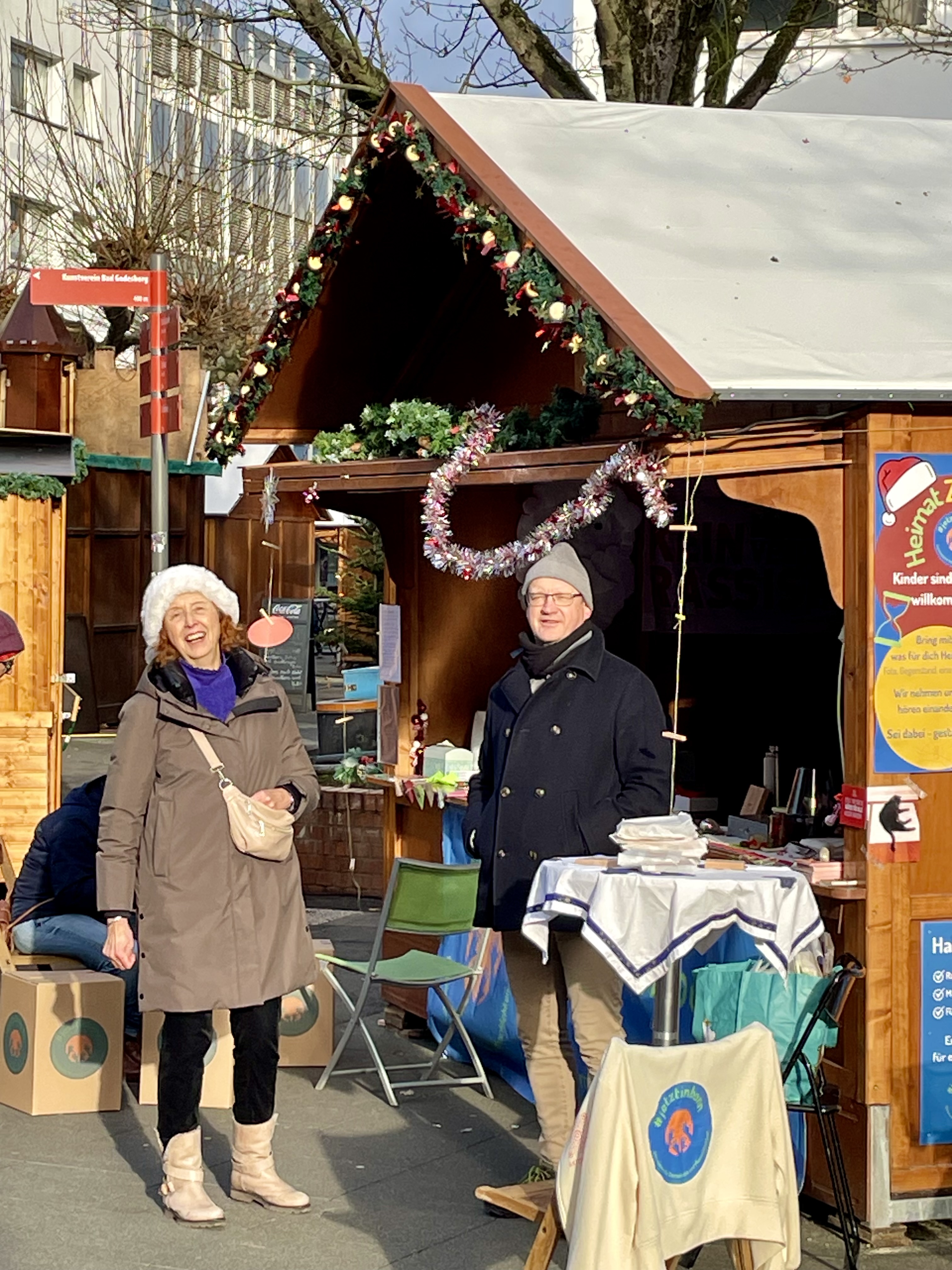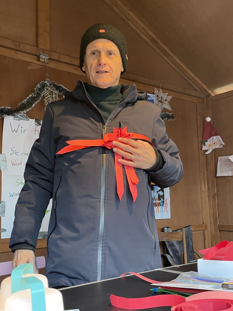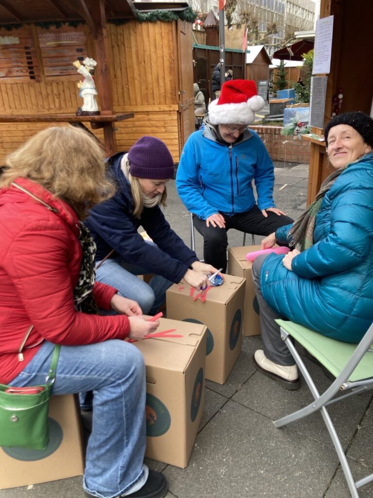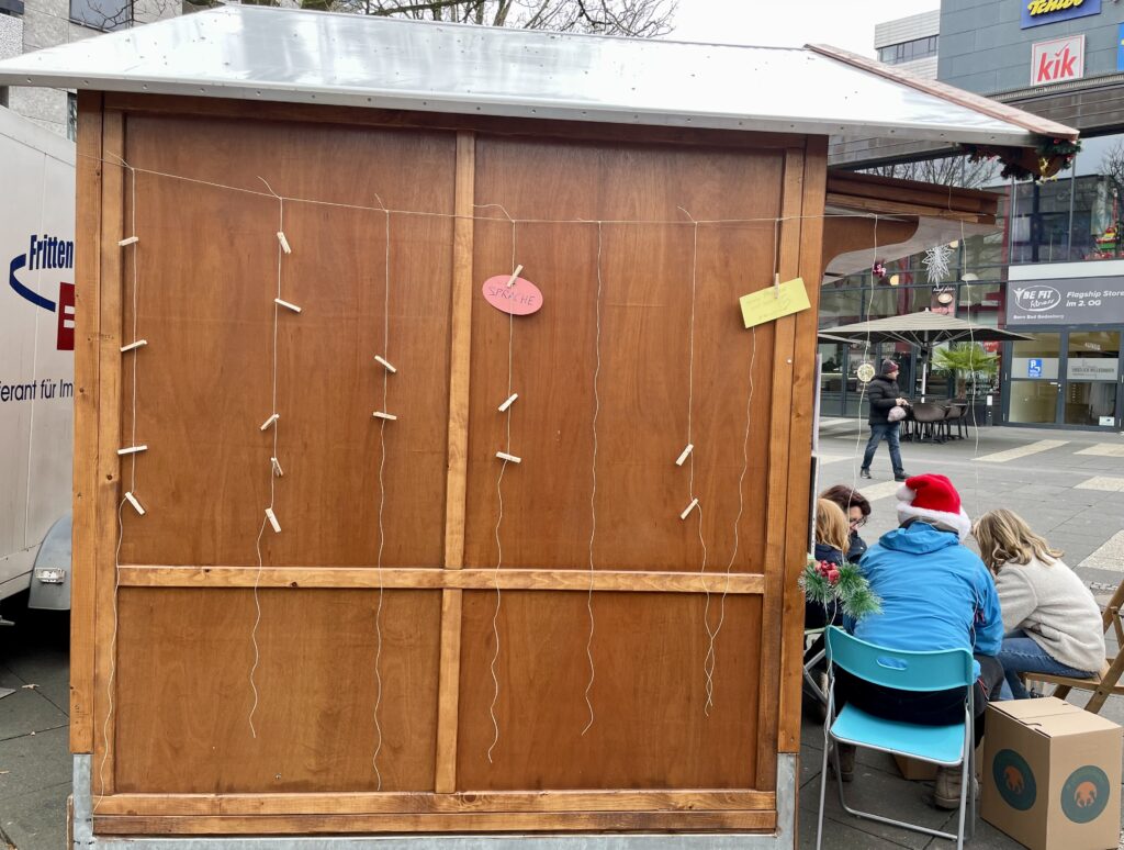 #jetztinbonn – Gemeinsam für Demokratie und Menschlichkeit hat letztes Jahr an einem Sonntag im Dezember auf dem Nikolaufmarkt in Bad Godesberg die Vereins-Hütte gemietet. Wir haben mit unseren Besucher*innen Engel, Herzen, Sterne und Mäuse gebastelt, uns ausgetauscht zum Thema Heimat und gemeinsam Würde geformt. In der Galerie findet Ihr ein paar ausgewählte Momente der Gemeinsamkeit.