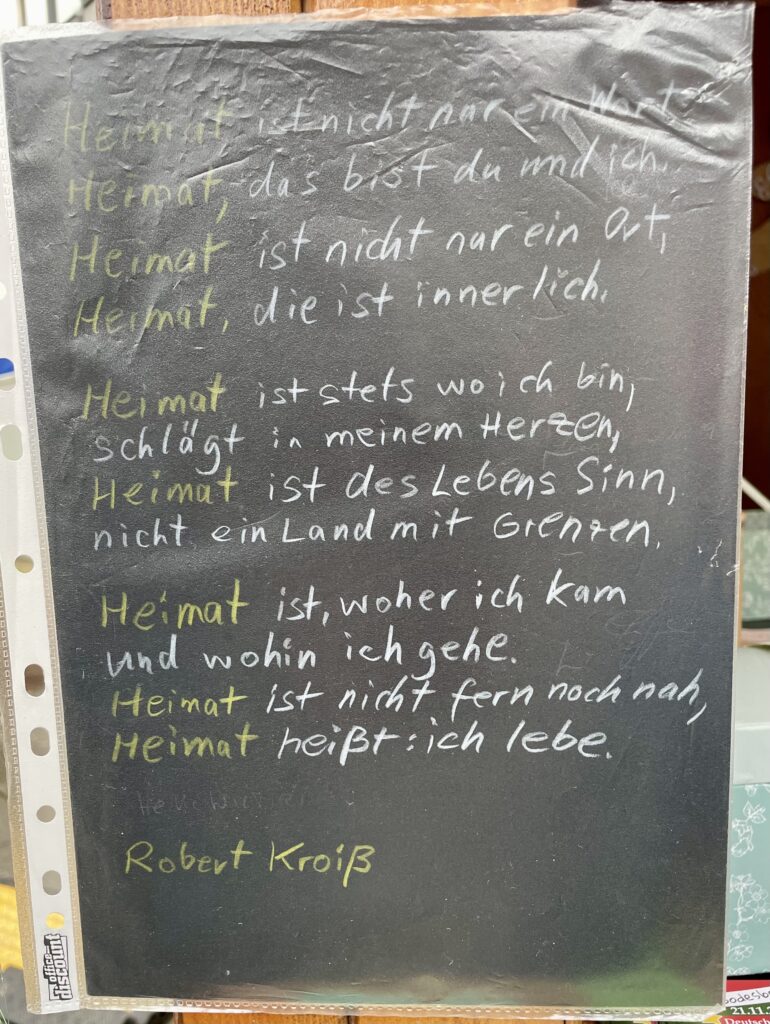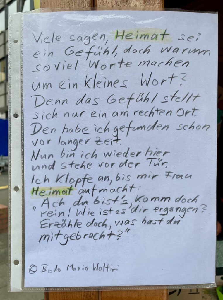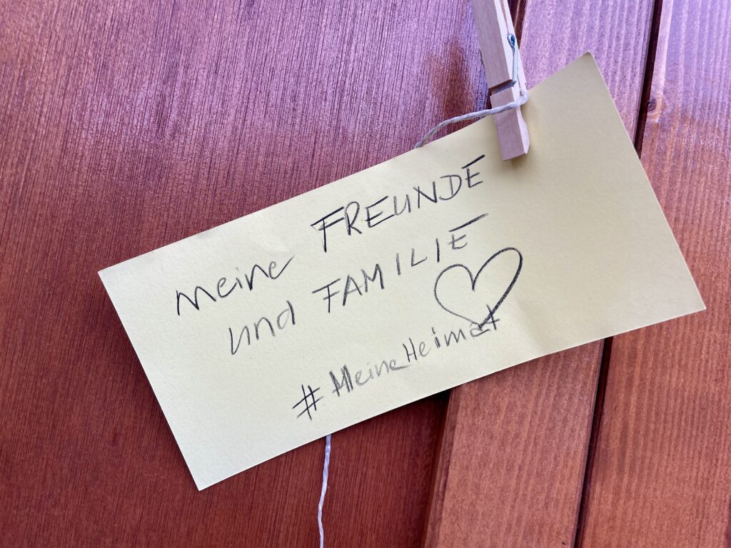 Ein Mann ging an unserem Stand vorbei, wir sprachen ihn an, fragten ihn, was für ihn Heimat bedeute. Er sagte, er sei aus Nigeria, seiner Heimat, die nicht mehr sicher für ihn sei, nach Deutschland geflohen. Sein Flüchlingsstatus sei ihm nun aberkannt worden und ihm drohe die Abschiebung nach Nigeria. Er bat uns um Hilfe. Wir werden seine Worte nicht vergessen: