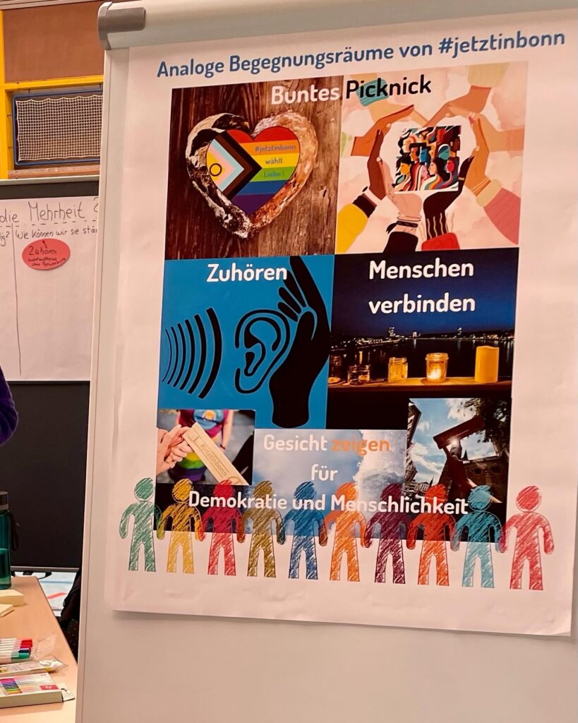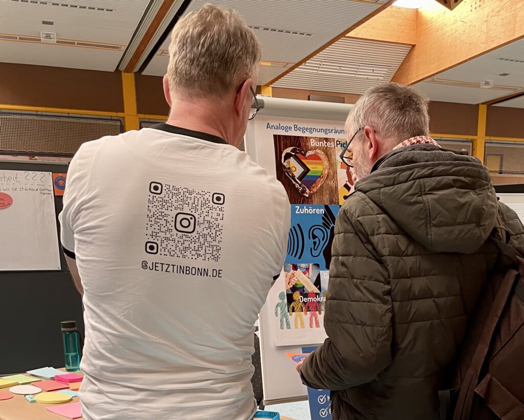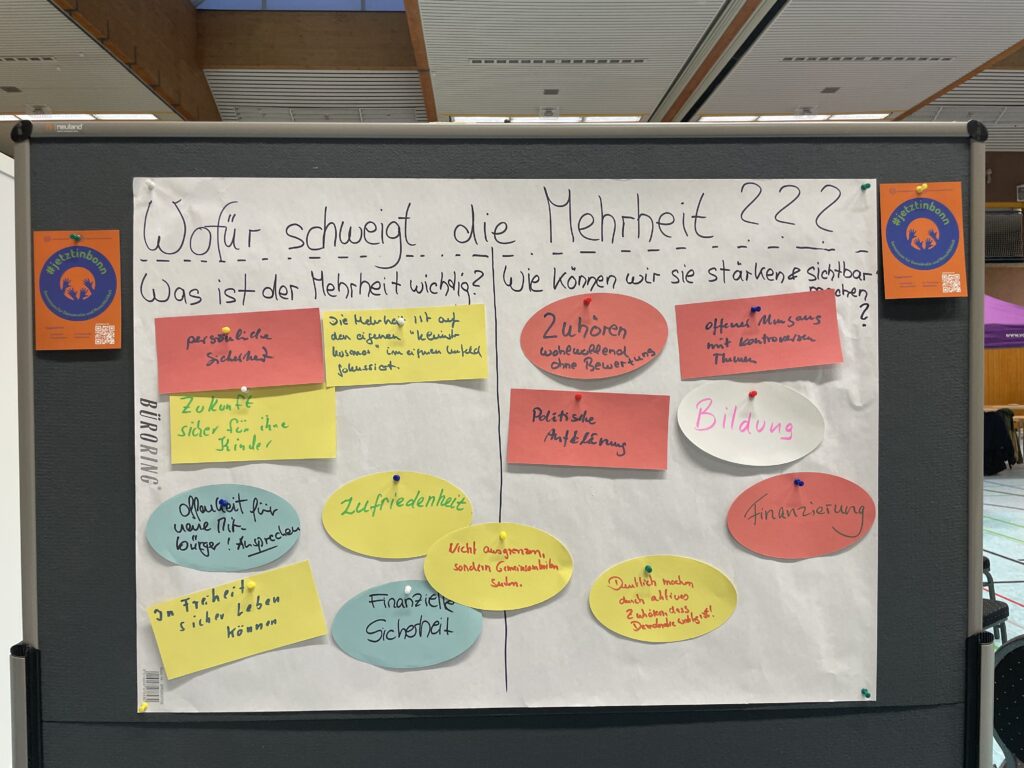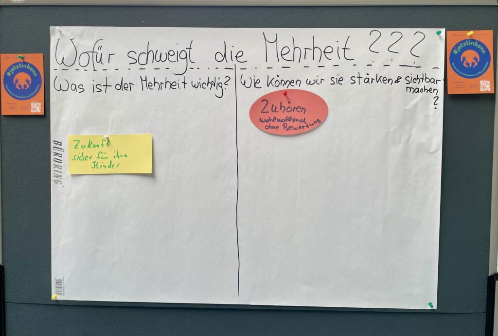 Ein Thema am #jetztinbonn-Stand: „Wofür schweigt die Mehrheit? Was ist der Mehrheit wichtig? Wie können wir sie stärken und sichtbar machen?“ – Am Anfang und …